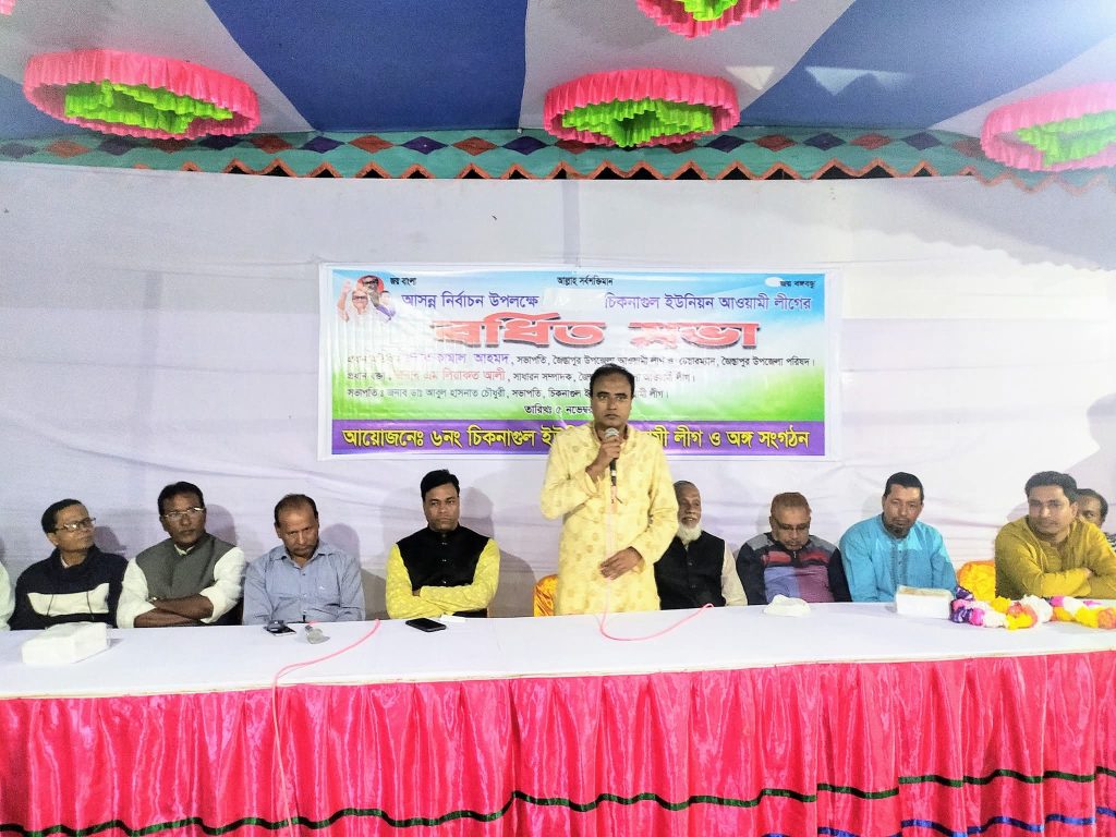 গতকাল শুক্রবার (৫ নভেম্বর ) রাত ৮ টায় জৈন্তাপুর উপজেলার ছয় নম্বর চিকনাগুল ইউনিয়ন পরিষদ নির্বাচনকে কেন্দ্র করে দলীয় প্রার্থী ও দলের নেতা-কর্মীদের সাথে চিকনাগুল ইউনিয়ন আওয়ামী লীগ ও অঙ্গ সহযোগী সংগঠনের আয়োজনে বর্ধিত সভায় এ আ্হবান জানান । উপজেলার চিকনাগুল বাজারের আল মক্কাস্থ মার্কেট সম্মুখে এ সভা অনুষ্ঠিত হয়। সভায় কামাল আহমদ বলেন আগামী ২৮ নভেম্বর উপজেলার পাঁচ টি ইউনিয়নে অনুষ্ঠিতব্য ইউনিয়ন পরিষদ নির্বাচনে বাংলাদেশ আওয়ামী লীগ মনোনীত প্রার্থীদের জয়ী করতে এ আহ্বান জানান।