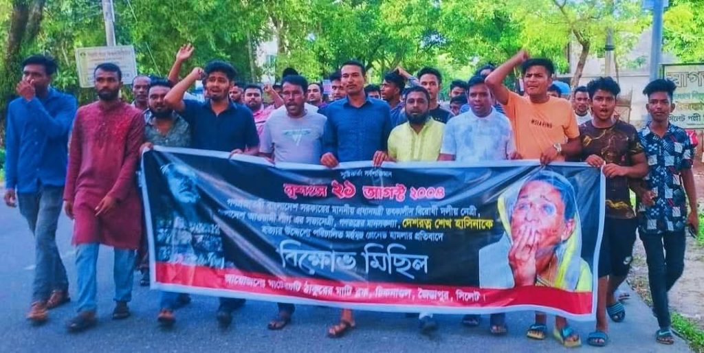 গ্রেনেড হামলার প্রতিবাদে জৈন্তাপুরের চিকনাগুলে বিক্ষোভ মিছিল