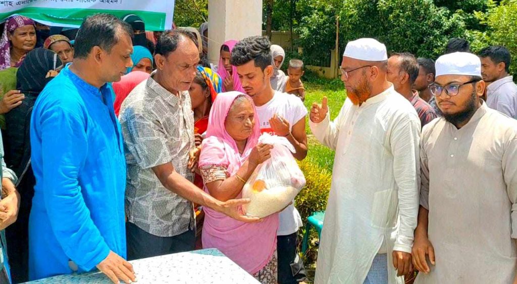 প্রবাসী কল্যাণ ট্রাস্টের প্রবাসী সৈয়দ সাব্বির আহমদ, শাহ আলী আহমদ, সৈয়দ মশাহীদ আলী, শাহ রজব আলী কয়েছ, সৈয়দ আতাউর রহমান, সৈয়দ রোমান আহমদ, শাহ ইয়াহইয়া, শাহ আব্দুল হামিদ, মোঃ মালিক উদ্দিন, শাহ এনায়েত আলী ও মোঃ লায়েক আহমদের অর্থায়নে এবং সাদিপুর ইউনিয়ন পরিষদের মেম্বার ও ইউনিয়ন আওয়ামীলীগের যুগ্ম-সাধারণ সম্পাদক শাহ ঈসমাইল আলীর তত্বাবধানে রবিবার দুপুরে উপজেলার সাদিপুর ইউনিয়নের পূর্ব তাজপুর, লামাতাজপুর, চর তাজপুর, চরগাও (চরতাজপুর) গ্রামের ৭ শতাধিক মানুষের মধ্যে চাল, ডাল, তেল, পেয়াজ, আলু ও ওরস্যালাইন উপহার হিসেবে বিতরণ করা হয়।