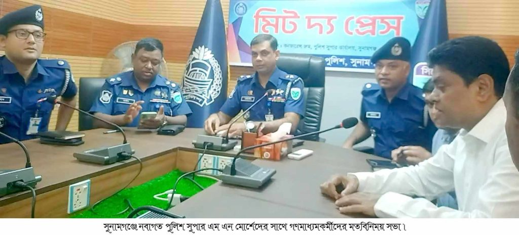 সুনামগঞ্জে নবাগত পুলিশ সুপারের যোগদান উপলক্ষে জেলায় কর্মরত বিভিন্ন প্রিন্ট ও ইলেক্ট্রনিক্স মিডিয়ার সংবাদকর্মীদের সাথে মতবিনিময় সভা অনুষ্ঠিত হয়েছে। শনিবার সকাল ১১টায় জেলা পুলিশের আয়োজনে পুলিশ সুপারের কনফারেন্স রুমে এ সভা অনুষ্ঠিত হয়।