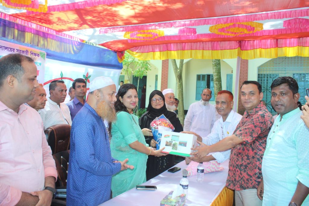 অশ্রুসিক্ত নয়নে বিদ্যালয়, শিক্ষক , বর্তমান ও সাবেক শিক্ষার্থীদের পক্ষ থেকে ফুলেল শুভেচ্ছা ও উপহার সামগ্রী প্রদান করে শেষ বিদায় জানানো হয় তাকে। একজন শিক্ষকের প্রতি শিক্ষার্থীদের এমন শ্রদ্ধা-ভালোবাসা অনুকরণীয় থাকবে বলে মনে করছেন এলাকাবাসী। কর্মজীবন শেষে নিয়ম অনুযায়ী প্রত্যেক চাকরিজীবীকে নিদিষ্ট একটা সময়ে অবসর নিতে হয়। কর্মগুণে সেই বিদায় যেমনি স্মৃতি হয়ে থাকে, তেমনি ভালোবাসায় মুগ্ধতা ছড়ায়। এভাবেই প্রিয় শিক্ষককে রাজকীয় বিদায় জানালেন প্রাক্তন শিক্ষার্থীরা। শনিবার (৭ সেপ্টেম্বর) দুপুর ১২ ঘটিকায় বিদ্যালয় প্রাঙ্গনে বিদ্যালয়ের শিক্ষক ও প্রাক্তন শিক্ষার্থীদের পক্ষ থেকে নানা আয়োজনে বিদায় সংবর্ধনা দেওয়া হয়।