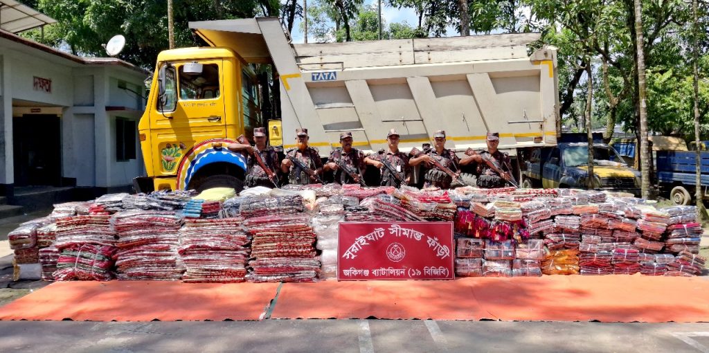বিজিবি সূত্রে জানা যায়, গোপন সংবাদের ভিত্তিতে ১৭ সেপ্টেম্বর (মঙ্গলবার) সকাল সাড়ে ৬টায় জকিগঞ্জ ব্যাটালিয়ন ১৯ বিজিবির আওতাধীন সুরাইঘাট বিওপির দায়িত্বপূর্ণ কানাইঘাট উপজেলার চতুল ঈদগাহ বাজার নামক স্থানে চোরাচালানী মালামাল পরিবহনে সন্দেহভাজন একটি বালি ভর্তি ট্রাককে চ্যালেঞ্জ করে বিজিবি টহল দল। বিজিবি টহল দলের টের পেয়ে ট্রাক রেখে চোরাকারবারি ও ট্রাক চালক পালিয়ে যায়। এসময় বিজিবি টহল দল বালি ভর্তি ট্রাকে অধিকতর তল্লাসী করে বালির স্তরের নিচে অভিনব কৌশলে বিপুল পরিমাণ ভারতীয় কাপড় সামগ্রী লুকানো অবস্থায় দেখতে পায়। পরবর্তীতে বিজিবি টহল দল বালি ভর্তি উক্ত ট্রাক হতে বিভিন্ন প্রকার ভারতীয় কাপড় সামগ্রী (শাড়ী, থ্রি পিস, লেহেঙ্গা, ধুতি কাপড়, থান কাপড় এবং বিবিধ) উদ্ধার করতে সক্ষম হয়। যার আনুমানিক সিজারমূল্য প্রায় দুই কোটি টাকা। চোরাকারবারি ও ট্রাক চালক পালিয়ে যাওয়ার কারণে অভিযানে কাউকে আটক করা যায়নি।