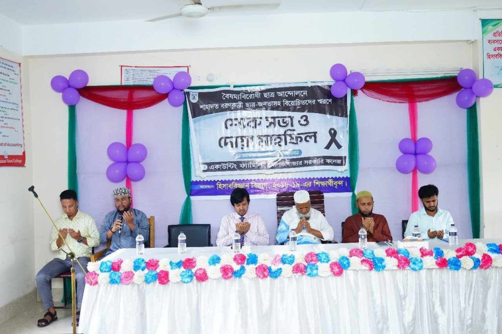 রিপন মিয়া মৌলভীবাজার প্রতিনিধি ::: মৌলভীবাজার সরকারি কলেজে একাউন্টিং ফ্যামিলির উদ্যোগে বৈষম্য বিরোধী ছাত্র আন্দোলনে শহীদদের স্মরণে শোক ও দোয়া মাহফিল অনুষ্ঠিত হয়েছে।