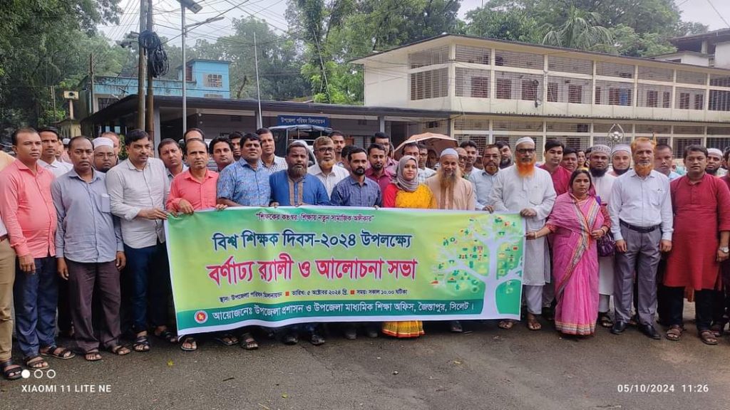 জৈন্তাপুরে বিশ্ব শিক্ষক দিবস -২০২৪ উপলক্ষে বর্ণাঢ্য র্যালী ও আলোচনা সভা অনুষ্ঠিত হয়েছে।