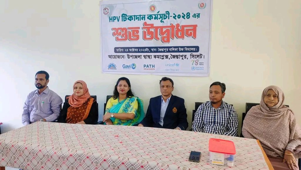 সিলেটের জৈন্তাপুর উপজেলায় জরায়ুমূখী ক্যান্সার রোগের প্রতিষেধক হিসেবে ১০-১৪ বছর বয়সী কিশোরীদের এইচপিভি টিকাদান কর্মসূচির শুভ উদ্বোধন করা হয়েছে।