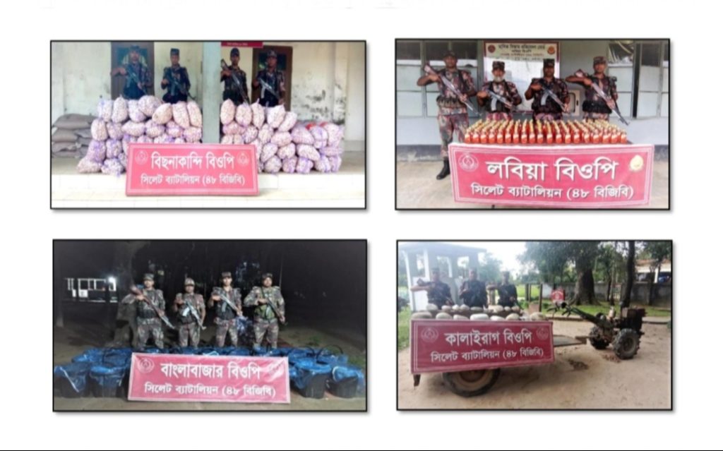 শুক্রবার (২৫ অক্টোবর) দুপুরে এক প্রেস বিজ্ঞপ্তিতে অভিযানের বিষয়টি নিশ্চিত করেন সিলেট ব্যাটালিয়ন ৪৮ বিজিবির অধিনায়ক লেফটেন্যান্ট কর্নেল মো.হাফিজুর রহমান, পিএসসি।