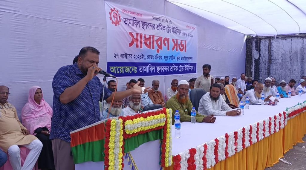 তামাবিল স্থলবন্দর শ্রমিক ট্রেড ইউনিয়নের সভাপতি মো. রফিকুল ইসলাম বাচ্চু সভাপতিত্বে ও সাবেক যুগ্ম সাধারণ সম্পাদক দিলীপ শর্মার সঞ্চালনায় অনুষ্ঠিত সভায় বক্তব্য রাখেন সংগঠনের উপদেষ্ঠা আনোয়ার হোসেন জুবের, মনসুর আলী ভূঁইয়া, আন্তাজ মিয়া, জালাল উদ্দিন লিটন, ইব্রাহিম আলী, সাবেক সাধারণ সম্পাদক আব্দুল জব্বার,ইউপি সদস্য ওমর ফারুক, তামাবিল স্থল বন্দর শ্রমিক ট্রেড ইউনিয়নের সাধারণ সম্পাদক মহরম আলী, সাংগঠনিক সম্পাদক সাইফুল ইসলাম, সাবেক সদস্য ফরিদ মিয়া, শাহজাহান আহমেদ, শ্রমিক নেতা মোতালেব দেওয়ান, সিদ্দিক আলী, দাতা সদস্য ফরমান আলী, সদস্য মনির আহমেদ।