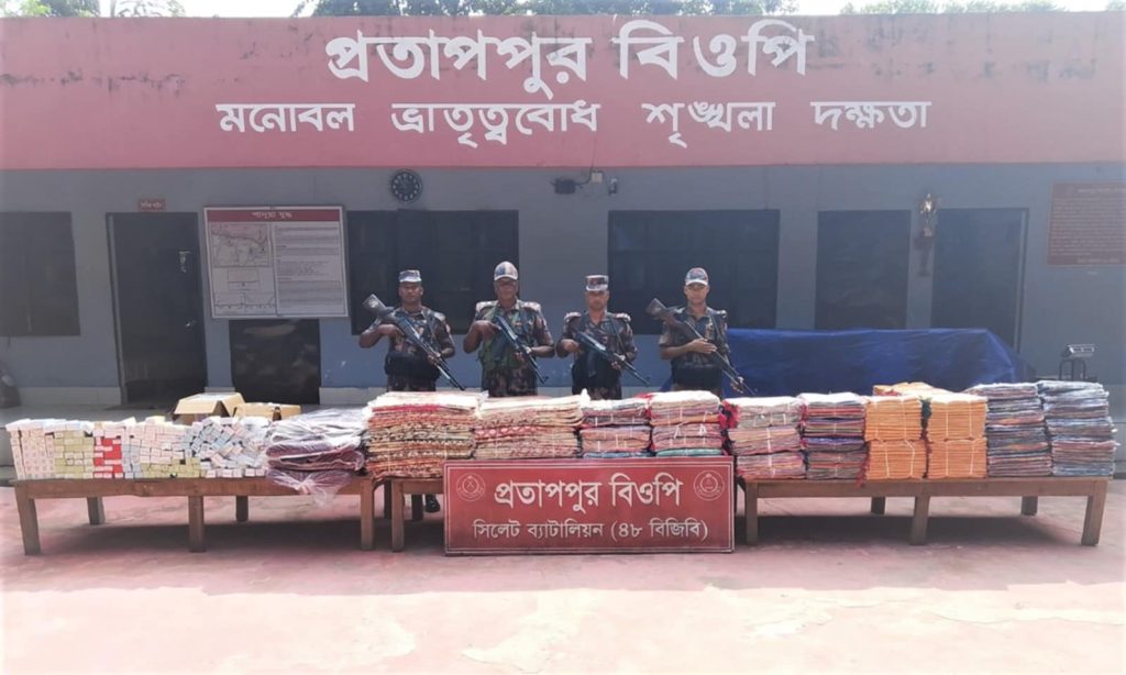 বিজ্ঞপ্তিতে বলা হয়, বৃহস্পতিবার রাতে গোপন সংবাদের ভিত্তিতে সিলেটের বিভিন্ন সীমান্ত এলাকায় অভিযান চালিয়ে বিজিবির টহল দল ভারতীয় শাড়ি ৭৯৮টি, কাশ্মীরি শাল ১২১টি, থ্রি পিস ৮১টি, কসমেটিক সামগ্রী ৪৫৬টি, মখমল সোফার কভার ২৫৪.৪০ মিটার এবং অবৈধভাবে পাথর উত্তোলনকারী নৌকা দুটিসহ অন্য ভারতীয় পণ্য আটক করে। যার মূল্য প্রায় ১ কোটি ৮৬ লাখ ৮০ হাজার টাকা।