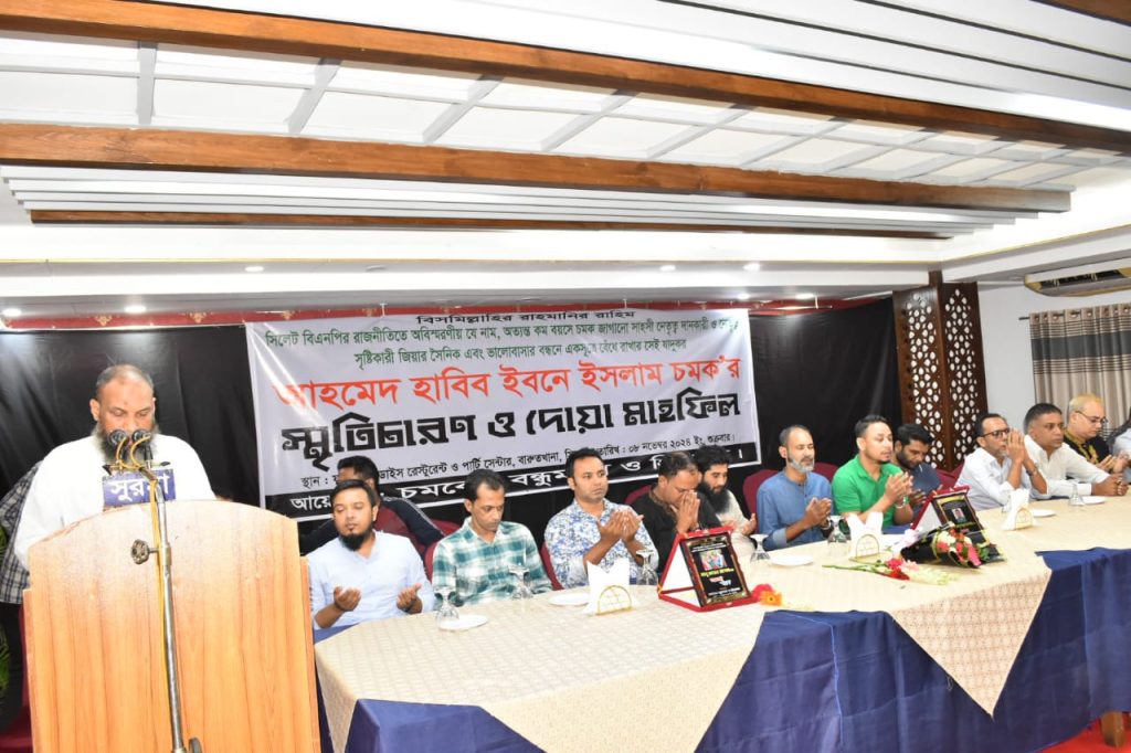 সিলেট বিএনপির রাজনীতিতে অবিস্মরণীয় আহমেদ হাবিব ইবনে ইসলাম চমক স্মরণে স্মৃতিচারণ ও দোয়া মাহফিল অনুষ্ঠান অনুষ্ঠিত হয়েছে।