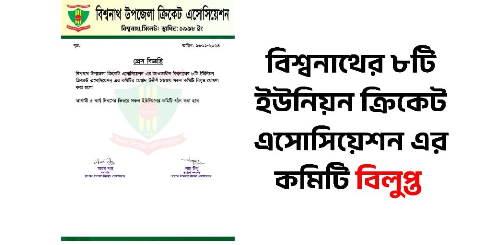 বিশ্বনাথের ৮টি ইউনিয়ন ক্রিকেট এসোসিয়েশন এর কমিটি বিলুপ্ত