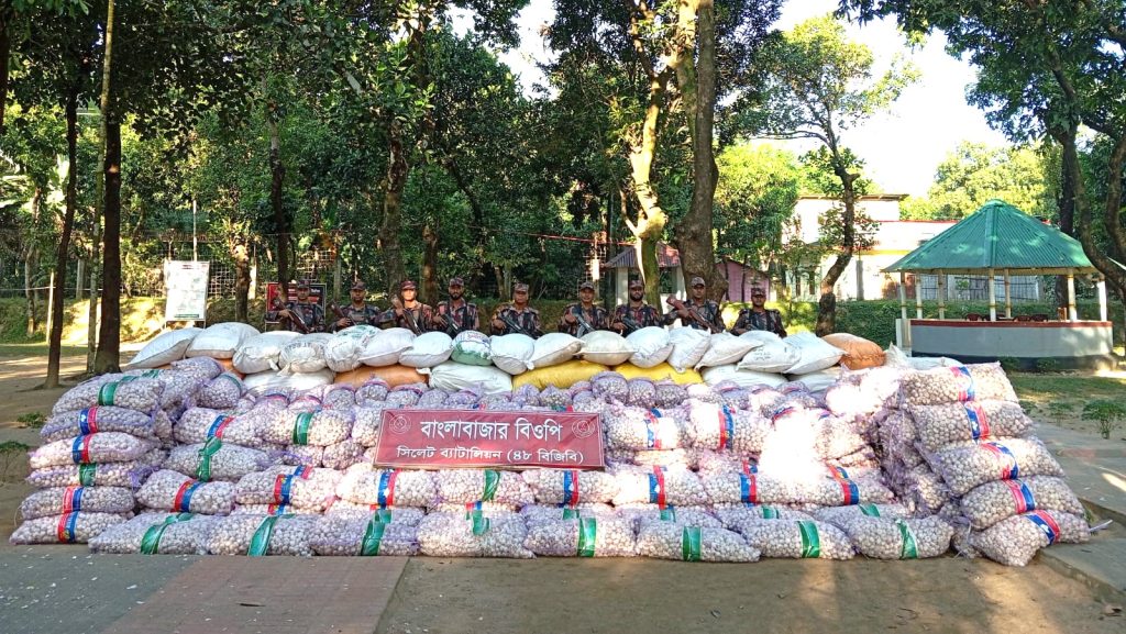 বিজিবি’র প্রেস বিজ্ঞপ্তি সূত্রে জানা যায়, বুধবার (২০ নভেম্বর) গোপন সংবাদের ভিত্তিতে সিলেট ব্যাটালিয়ন (৪৮ বিজিবি) এর দায়িত্বাধীন সিলেট এবং সুনামগঞ্জ জেলার সীমান্তবর্তী এলাকায় অভিযান পরিচালনা করে বাংলাদেশী রসুন, সুপারি, ভারতীয় মোটসাইকেল এবং অবৈধভাবে পাথর উত্তোলনকারী নৌকাসহ অন্যান্য ভারতীয় পণ্য আটক করে। যার আনুমানিক সিজার মূল্য ৭০ লক্ষ ৩ হাজার ৯০০ টাকা।