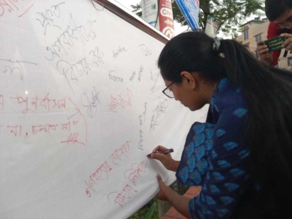 গণস্বাক্ষর কর্মসূচিতে বক্তব্য দেন, শাবিপ্রবির পদার্থ বিজ্ঞান বিভাগের মেহেরাব সাদাত ,বাংলা বিভাগের শফিক আহমেদ,পদার্থ বিজ্ঞান বিভাগের মো. সজিব মিয়া প্রান্তিক দীপম প্রমুখ।