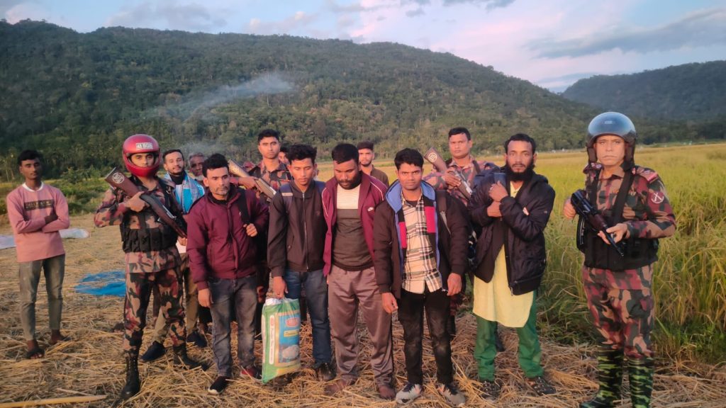 শনিবার ( ৩০শে নভেম্বর)  ৫টায় ১২৭৯ মেইন পিলার এলাকা দিয়ে গোপন সংবাদের ভিত্তিত্বে শ্রীপুর বিওপির টহলটিম তাদের আটক করে।