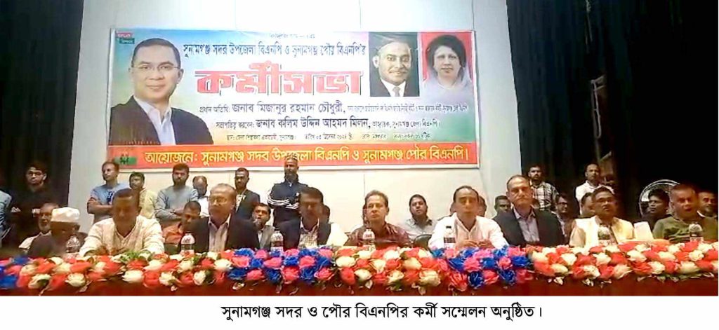 সুনামগঞ্জ সদর উপজেলা বিএনপি ও পৌর বিএনপি’র উদ্যেগে কর্মীসভা অনুষ্ঠিত হয়েছে।