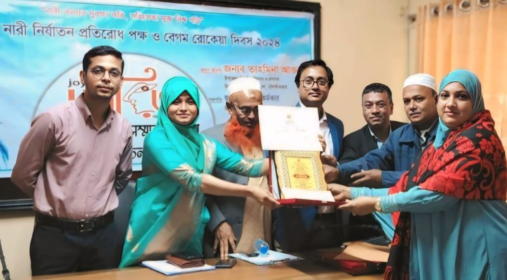 মৌলভীবাজারের বড়লেখায় আন্তর্জাতিক নারী নির্যাতন প্রতিরোধ পক্ষ ও বেগম রোকেয়া দিবস পালন উপলক্ষে মানববন্ধন, আলোচনা সভা ও জীবন সংগ্রামের নানা প্রতিকুলতা কাটিয়ে সফলতা অর্জনকারি ৩ জন (জয়িতা) উদ্যমী নারীকে সম্মাননা প্রদান করা হয়েছে।