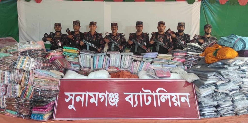 সুনামগঞ্জে প্রায় দেড়কোটি টাকার ভারতীয় বিভিন্ন পণ্য জব্দ