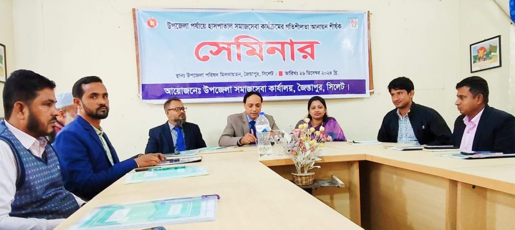 সিলেটের জৈন্তাপুরে উপজেলা সমাজসেবা কার্যালয়ের আয়োজনে উপজেলা পর্যায়ে হাসপাতালে সমাজসেবা কার্যক্রমের গতিশীলতা আনায়ন শীর্ষক সেমিনার অনুষ্ঠিত হয়।