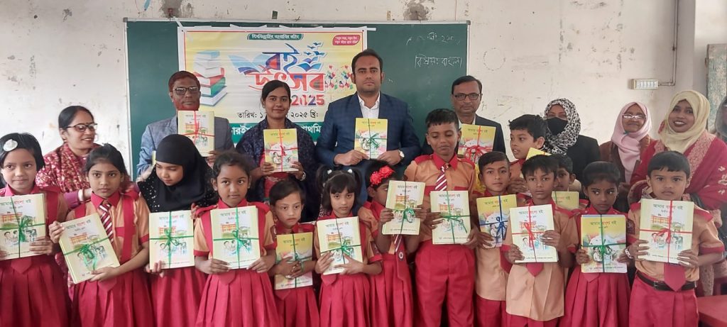 অন্যান্যের মধ্যে উপস্থিত ছিলেন সহকারি শিক্ষা অফিসার শারমিন খাতুন, বিদ্যালয়ের প্রধান শিক্ষক মো. হারুন আর রশীদ প্রমুখ। উদ্ধোধন শেষে প্রধান অতিথি প্রথম ও দ্বিতীয় শ্রেনীর শিক্ষার্থীদের মাঝে নতুন বই তুলে দেন।