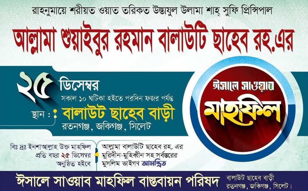 আল্লামা শুয়াইবুর রহমান বালাউটি ছাহেব রহ. এর ঈসালে সাওয়াব মাহফিল ২৫ ডিসেম্বর
