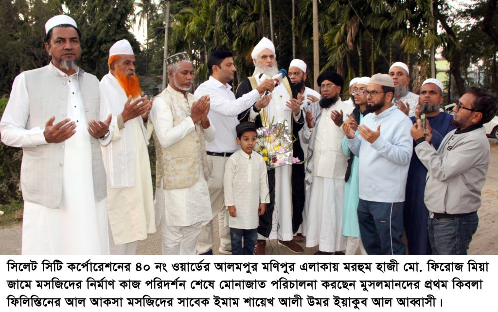 সিলেট সিটি কর্পোরেশনের ৪০ নং ওয়ার্ডের আলমপুর মণিপুর এলাকায় মরহুম হাজী মো. ফিরোজ মিয়া জামে মসজিদের নির্মাণ কাজ পরিদর্শন করেছেন মুসলমানদের প্রথম কিবলা ফিলিস্তিনের আল আকসা মসজিদের সাবেক ইমাম শায়েখ আলী উমর ইয়াকুব আল আব্বাসী।