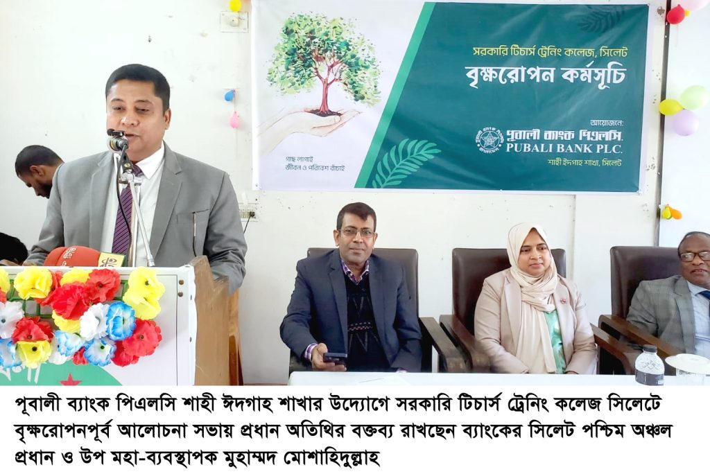 তিনি সোমবার (৬ জানুয়ারি) পূবালী ব্যাংক পিএলসি শাহী ঈদগাহ শাখার উদ্যোগে নগরীর টিভি গেইটস্থ সরকারি টিচার্স ট্রেনিং কলেজ সিলেটে বৃক্ষরোপন উপলক্ষ্যে আয়োজিত আলোচনা সভায় প্রধান অতিথির বক্তব্যে এসব কথা বলেন।