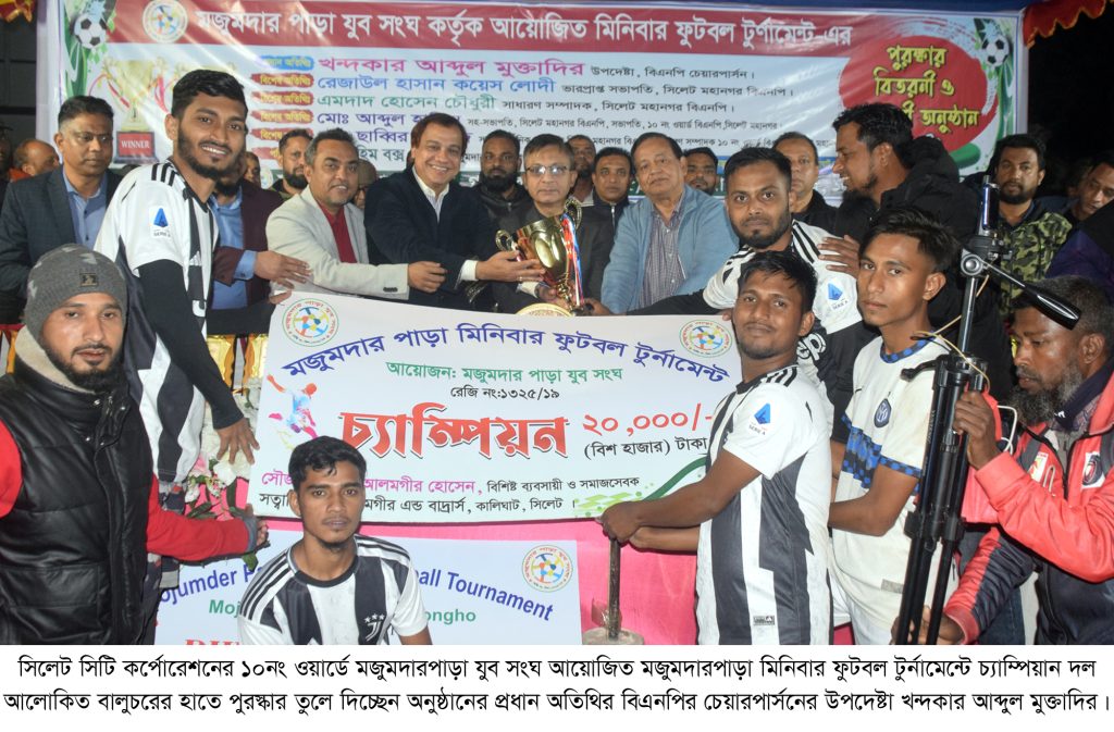 তিনি রবিবার (১২ জানুয়ারি) বিকেলে সিলেট সিটি কর্পোরেশনের ১০ নং ওয়ার্ডে মজুমদারপাড়া যুব সংঘ আয়োজিত মজুমদার পাড়া মিনিবার ফুটবল টুর্নামেন্ট ও পুরস্কার বিতরণী অনুষ্ঠানে প্রধান অতিথির বক্তব্যে উপরোক্ত কথাগুলো বলেন।