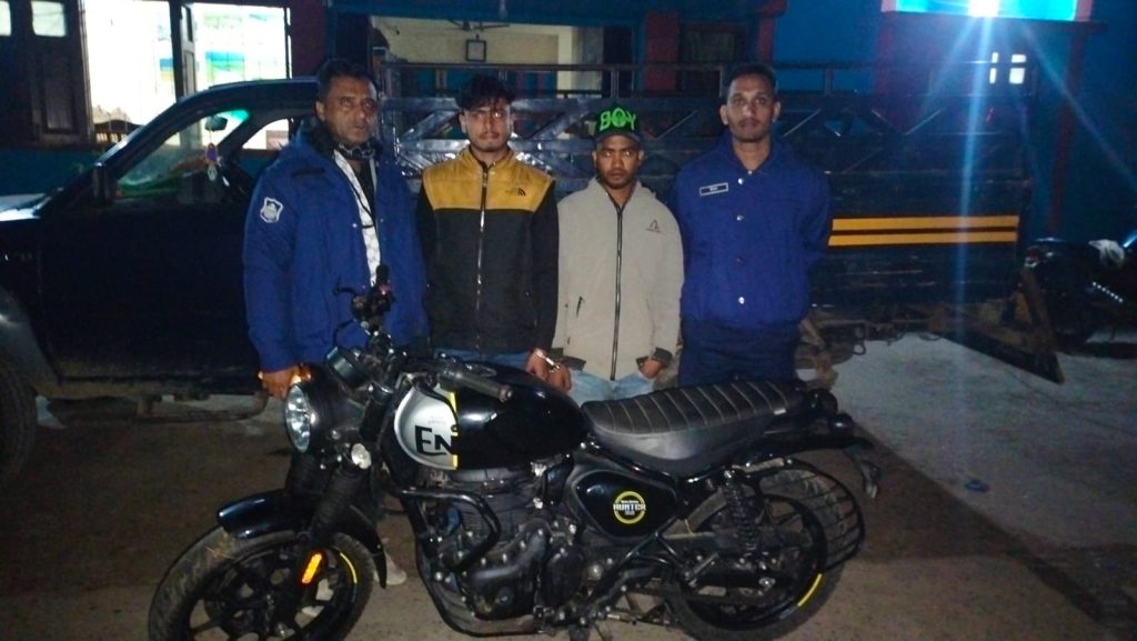 পুলিশ সূত্রে জানাযায়, ১২ জানুযারী রবিবার গভীর রাত ৩টায় জৈন্তাপুর মডেল থানা পুলিশের ভারপ্রাপ্ত কর্মকর্তা (ওসি) গোপন সংবাদের ভিত্তিত্বে সিলেট তামাবিল মহাসড়কে অভিযান পরিচালনা করে সীমান্ত অতিক্রম করে বিশেষ কৌশলে চোরাকারবারী দলের সদস্যরা ১টি ভারতীয় রয়েল এন্ড ফিল্ড হান্টার ৩৫০ সিসি মটর সাইকেল নিয়ে সিলেটের উদ্যেশে যাচ্ছে। গোপন সংবাদের ভিত্তিতে তাৎক্ষণিক জৈন্তাপুর মডেল থানা পুলিশ কৌশলে নজরদারী বৃদ্ধি করে অভিযান পরিচালন করতে মাঠে নামে। নজরদারীর এক পর্যায় ডিআই (মিনি ট্রাক) করে বিশেষ কৌশলে সীমান্ত হতে নিয়ে আসা ভারতীয় মটর সাইকেল সহ দুইজনকে আটক করে।