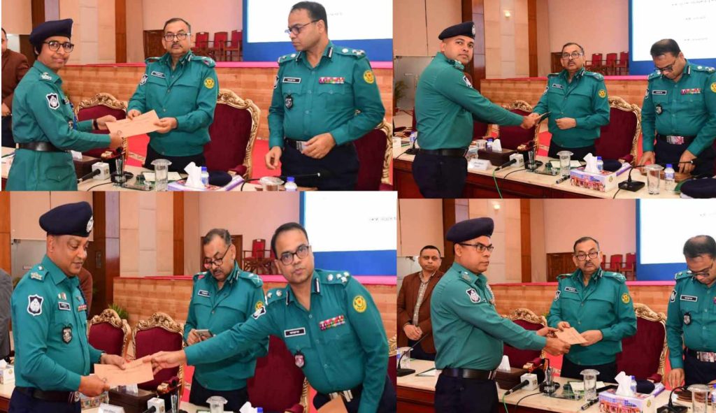 ঢাকা মহানগরের আইনশৃঙ্খলা রক্ষা ও জননিরাপত্তা বিধানসহ উত্তম কাজের স্বীকৃতি হিসেবে ডিএমপির বিভিন্ন পদমর্যাদার কর্মকর্তাগণকে পুরস্কৃত করেছেন ডিএমপি কমিশনার শেখ মোঃ সাজ্জাত আলী, এনডিসি।