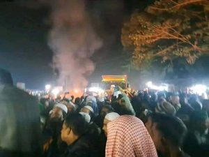 বৃহস্পতিবার ( ৩০ জানুয়ারী) সিলেটের জৈন্তাপুর উপজেলার হরিপুর বাজার মাদ্রাসার প্রতিষ্টাতা আল্লামা শেখ আব্দুল্লাহ (রহ.) হরিপুরী ও অত্র মাদ্রাসার মুহতামিম শায়খ হিলাল আহমেদকে নিয়ে কটুক্তিকর স্ট্যাটাসের প্রতিবাদে রাত ১১ টায় হরিপুর বাজারস্থ তামাবিল মহাসড়কে বিক্ষোভ মিছিল করে উপজেলার ৫নং ফতেপুর ইউনিয়ন বৃহত্তর হরিপুরের তৌহিদী জনতা।