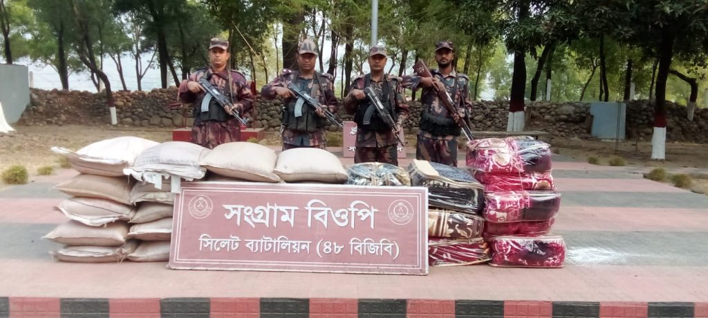 সিলেটের সীমান্তে বিজিবি’র পৃথক অভিযানে ১ কোটি ১৫ লাখ টাকার চোরাই পণ্য জব্দ