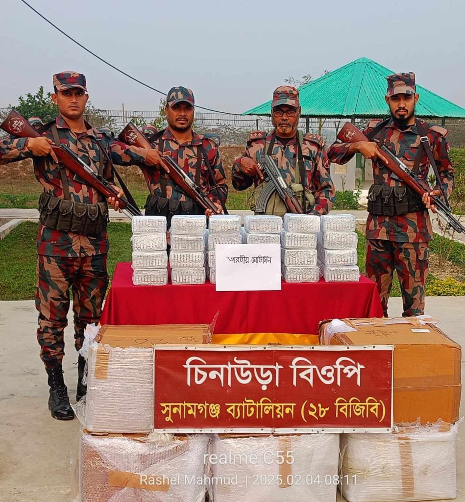 জব্দকৃত ওষুধ ও অন্যান্য মালামাল সুনামগঞ্জ শুল্ক কার্যালয়ে হস্তান্তর করা হয়েছে বলেও জানিয়েছেন বিজিবির উর্ধ্বতন এ কর্মকর্তা।