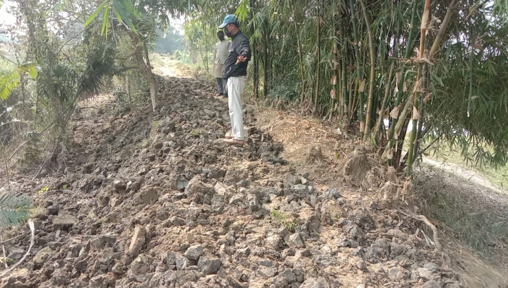 ছাতকে ফসল রক্ষা বাঁধের কাজে ধীরগতি, লুটপাট করতে প্রভাষক হয়েছেন কৃষক