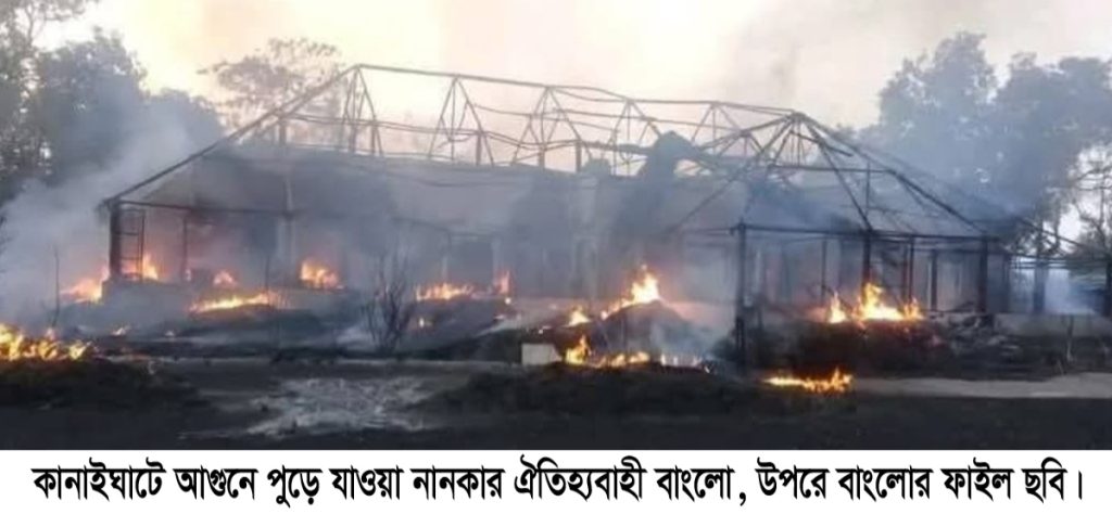 কানাইঘাট লোভাছড়া চা-বাগানের শত বছরের দৃষ্টিনন্দন বাংলো আগুনে পুড়ে ছাই