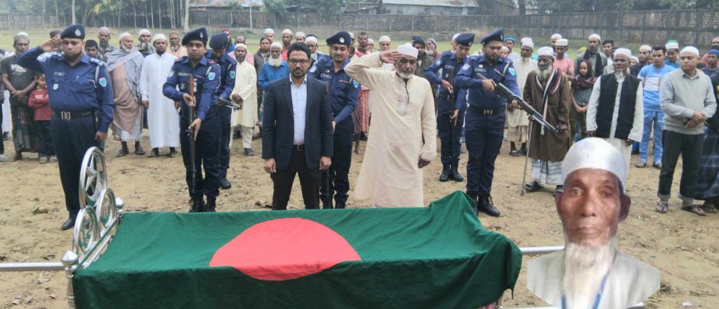 রবিবার বিকেল ৪ টায় স্থানীয় আলাপুর বড় মোকাম সংলগ্ন মাঠে বালাগঞ্জ থানা পুলিশের একটি চৌকস দল তাঁকে গার্ড অব অনার দেয়।