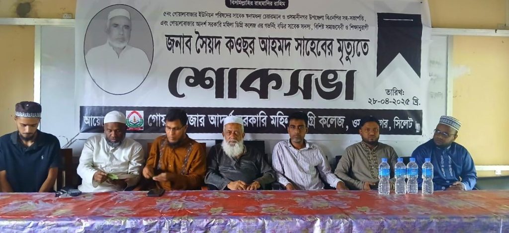 সিলেটের ওসমানীনগরের গোয়ালাবাজার সরকারি মহিলা ডিগ্রি কলেজে উদ্যোগে গোয়ালাবাজার ইউনিয়নের সাবেক চেয়ারম্যান মরহুম সৈয়দ কওছর আহমদের স্মরণে শোক সভা অনুষ্ঠিত হয়েছে।