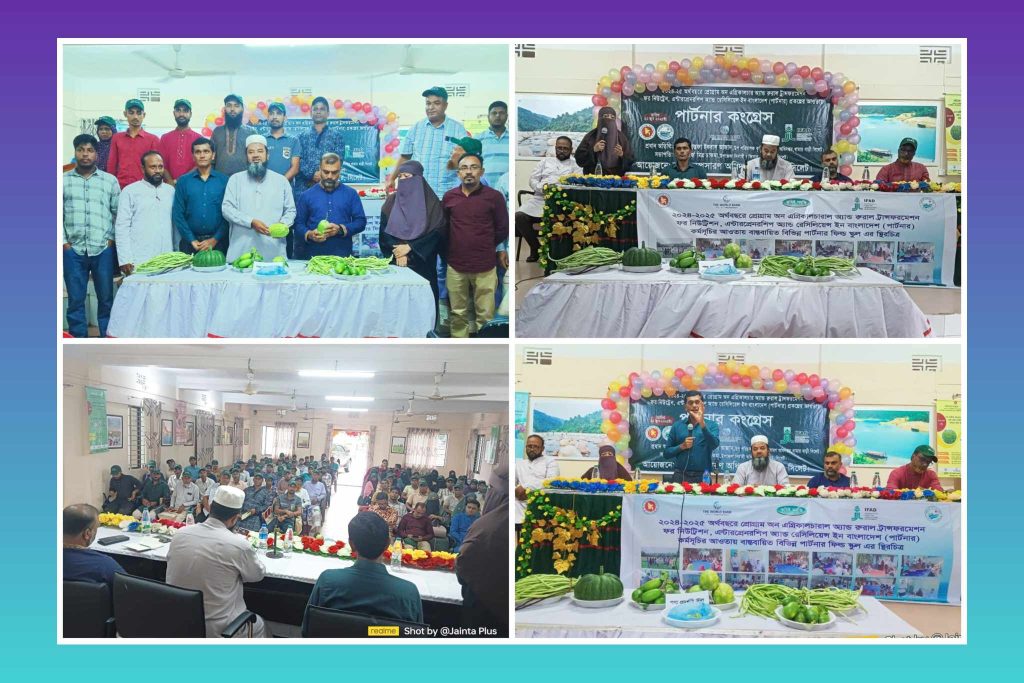 জৈন্তাপুর সিলেট প্রতিনিধি:: জৈন্তাপুর উপজেলা কৃষি সম্প্রসারন অধিদপ্তরের আয়োজনে ২০২৪-২৫ অর্থবছরের প্রোগ্রাম অন অ্যাগ্রিকালচার এন্ড রুরাল ট্রান্সফরমেশন ফর নিউট্রিশন এন্টারপ্রেনরশিপ এন্ড রেজিলিয়েন্স ইন বাংলাদেশ (পার্টনার) এর আওতায় “পার্টনার কংগ্রেস” অনুষ্ঠিত হয়েছে।