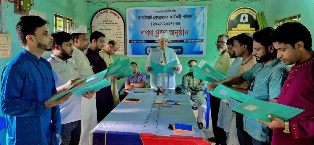 কানাইঘাট প্রতিনিধিঃ ঐতিহ্যবাহী কানাইঘাট প্রেসক্লাবের ২০২৫-২৭ সেশনের নবনির্বাচিত কার্যনির্বাহী কমিটির নেতৃবৃন্দদের শপথ গ্রহণ অনুষ্ঠান সম্পন্ন হয়েছে।