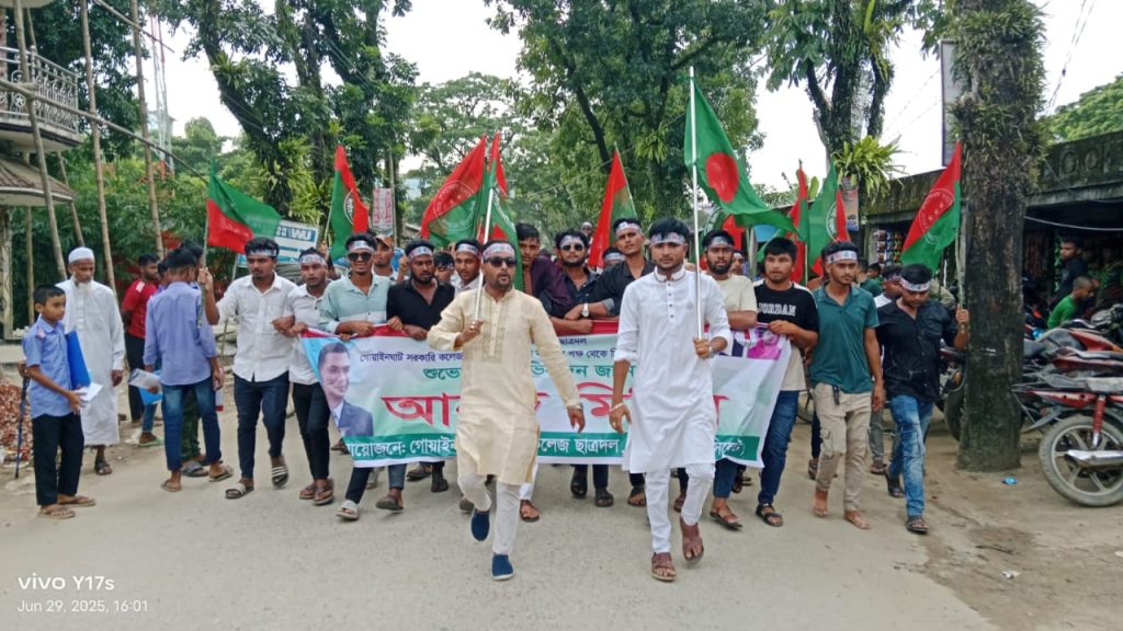 আনন্দ মিছিল শেষে গোয়াইনঘাট সবিজ বাজারের সামনে অনুষ্ঠিত সংক্ষিপ্ত সমাবেশে বক্তব্য রাখেন সরকারি কলেজের ছাত্র দলের নবগঠিত কমিটির সভাপতি জাহাঙ্গীর আলম ও সাধারণ সম্পাদক জুয়েল আহমদ।