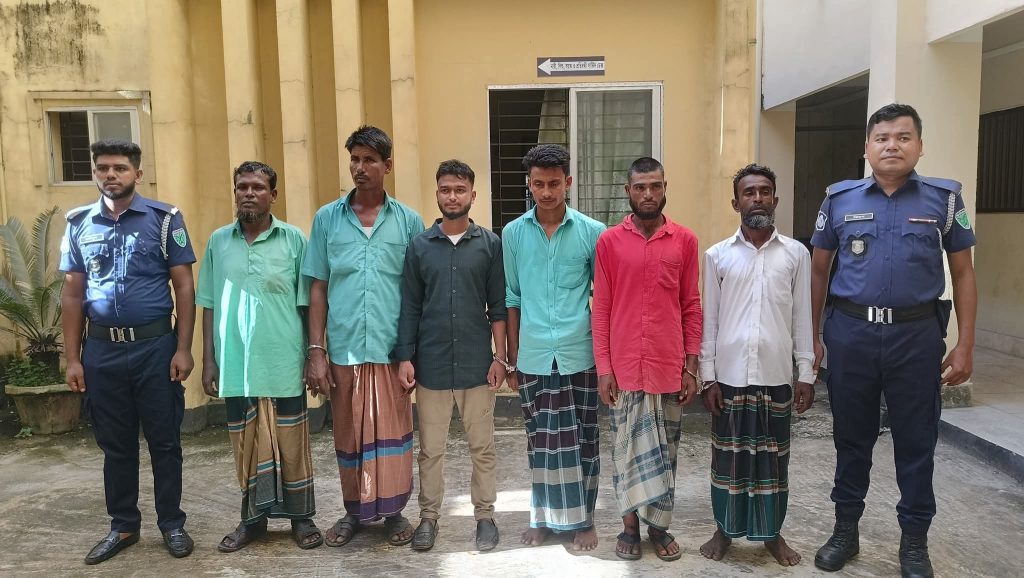 আটককৃতরা হলেন মাটিকাপা গ্রামের জালাল উদ্দিন, পুত্রইকবাল হোসেন ইমন (২১),লেংগুড়া গ্রামের জিহাদ উল্ল্যা পুত্র কুদরত উল্ল্যা (৪৩), মাহমুদ আলী পুত্র তোফায়েল আহমেদ (২৬), জমির উদ্দিনের পুত্র বদর উদ্দিন (৪৫), মৃত আব্দুস ছালামের পুত্র রহিম উদ্দিন ( ৪৫) এবং তাহির আলী পুত্র সুলেমান (৩০)।