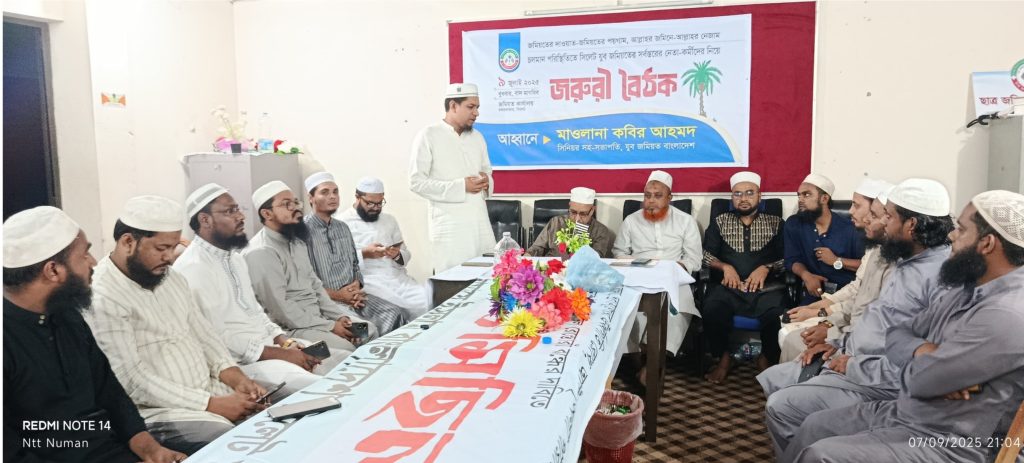 দেশের বর্তমান সংকটকালীন পরিস্থিতিতে যুব জমিয়তের কর্মীদেরকে আদর্শিক ভূমিকা পালনের আহ্বান জানিয়েছেন সংগঠনটির কেন্দ্রীয় সিনিয়র সহ-সভাপতি মাওলানা কবীর আহমদ। তিনি বলেন, “দেশ ও জাতির কল্যাণে আমাদের প্রতিটি পদক্ষেপ হতে হবে সত্য ও ন্যায়ের পক্ষে। যুব জমিয়তের কর্মীদের হতে হবে আদর্শের প্রতীক।”