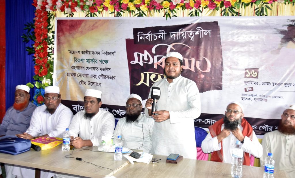 বাংলাদেশ খেলাফত মজলিসের রিকশা প্রতীকের সমর্থনে ও ছাতক-দোয়ারায় খেলাফত মজলিসের প্রার্থীকে বিজয়ী করার লক্ষ্যে প্রতিটি পাড়া – মহল্লায় জোরালো প্রচার অভিযান চালানোর জন্যে সভায় ঐক্যমত পোষণ করা হয়।
