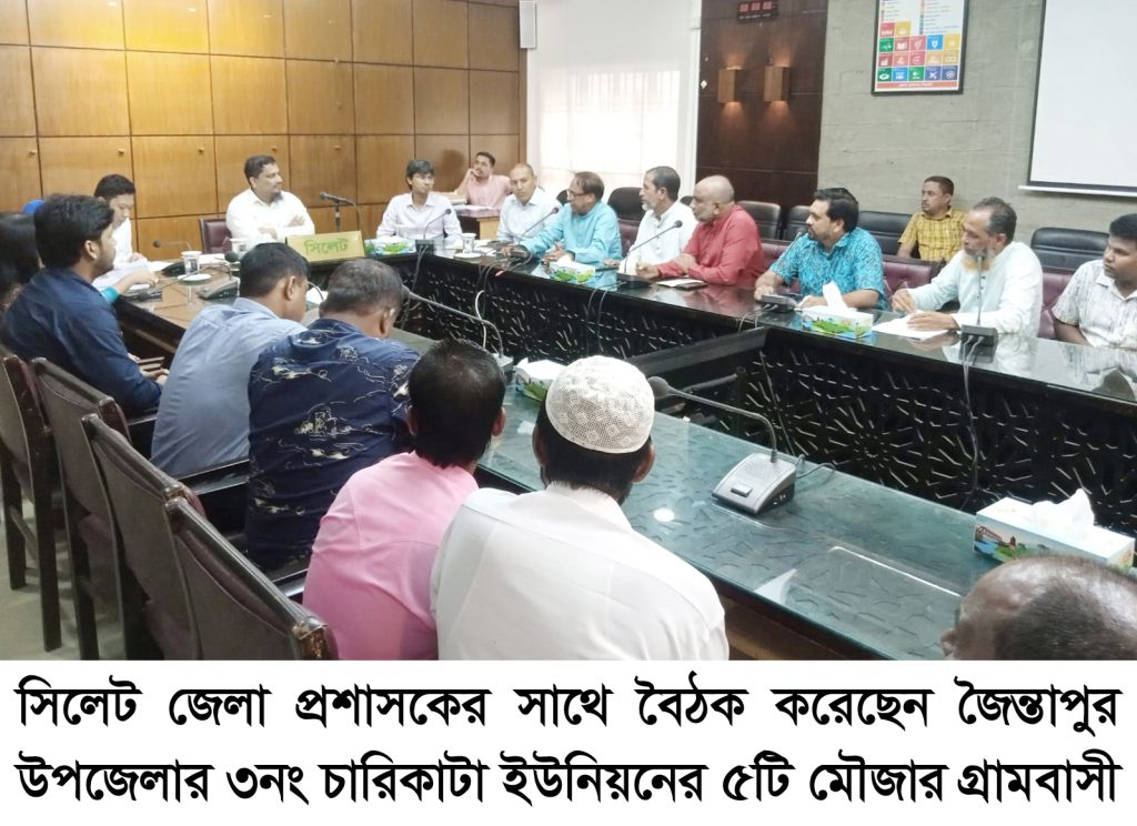দি মেঘালয় টি এষ্টেট এন্ড খোদেজা বহুমুখী ফার্ম লি. এর ইজারা বাতিলের দাবিতে সিলেটের জেলা প্রশাসকের সাথে বৈঠক করেছেন জৈন্তাপুর উপজেলার ৩নং চারিকাটা ইউনিয়নের ৫টি মৌজার গ্রামবাসী।