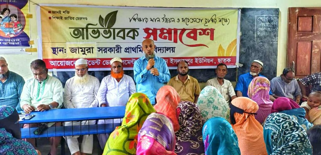 সুনামগঞ্জের ছাতকে শিক্ষার মান উন্নয়ন ও সচেতনতা বৃদ্ধির লক্ষ্যে স্টুডেন্ট ডেভেলপমেন্ট এসোসিয়েশন ইসলামপুর ইউনিয়নের উদ্যোগে জামুরা সরকারী প্রাথমিক বিদ্যালয়ের ছাত্র ছাত্রীদের প্রায় শতকরা ৭০ ভাগ অভিভাবক ও এলাকার মুরব্বিয়ানে কেরাম কে নিয়ে আজ ২৮জুলাই জামুরা সরকারী প্রাথমিক বিদ্যালয়ে অভিভাবক সমাবেশ অনুষ্ঠিত হয়েছে।