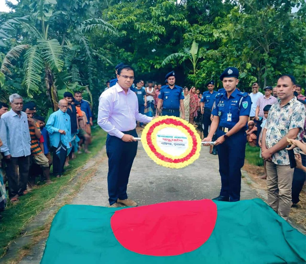 শান্তিগঞ্জ উপজেলা প্রশাসনের পক্ষ থেকে উপজেলা নির্বাহী কর্মকর্তা সুকান্ত সাহার উপস্থিতিতে এবং শান্তিগঞ্জ থানার পিএসআই (নি.) মামুনুর রশীদের নেতৃত্বে পুলিশের একটি চৌকস দল তাঁকে ‘গার্ড অব অনার’ প্রদান করে।