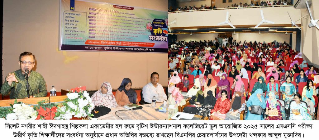 তিনি মঙ্গলবার (২৯ জুলাই) সিলেট নগরীর শাহী ঈদগাহস্থ শিল্পকলা একাডেমীর হল রুমে বৃটিশ ইন্টারন্যাশনাল কলেজিয়েট স্কুল আয়োজিত ২০২৫ সালের এসএসসি পরীক্ষা উত্তীর্ণ কৃতি শিক্ষার্থীদের সংবর্ধনা অনুষ্ঠানে প্রধান অতিথির বক্তব্যে উপরোক্ত কথাগুলো বলেন।