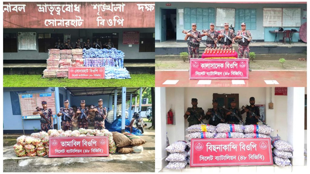 গোপন সংবাদের ভিত্তিতে ২ আগস্ট শনিবার বিভিন্ন সীমান্ত পয়েন্টে একযোগে চালানো এই অভিযানে বিজিবি সদস্যরা সোনারহাট, পান্থুমাই, তামাবিল, শ্রীপুর, বিছনাকান্দি, বাংলাবাজার, লাফার্জ ও কালাসাদেক সীমান্ত এলাকা থেকে বিপুল পরিমাণ ভারতীয় পণ্য, বাংলাদেশ থেকে পাচারকালে কিছু পণ্য ও পাচারে ব্যবহৃত একটি ইঞ্জিনচালিত নৌকা জব্দ করেন।