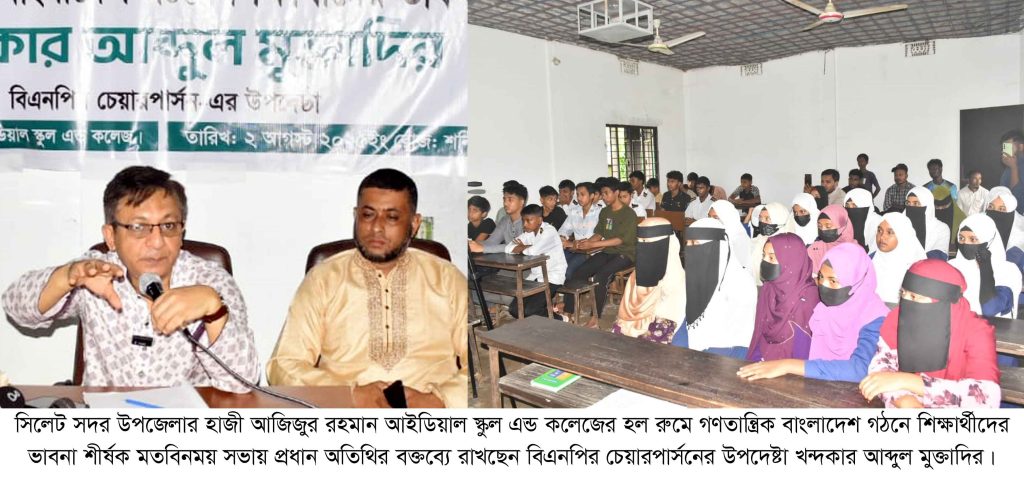 তিনি রবিবার (৩ আগস্ট) সিলেট সদর উপজেলার হাজী আজিজুর রহমান আইডিয়াল স্কুল এন্ড কলেজের হল রুমে গণতান্ত্রিক বাংলাদেশ গঠনে শিক্ষার্থীদের ভাবনা শীর্ষক মতবিনময় সভায় প্রধান অতিথির বক্তব্যে একথা বলেন।