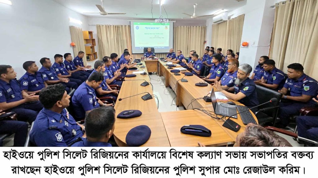 হাইওয়ে পুলিশ সিলেট রিজিয়নের কার্যালয়ে বিশেষ কল্যাণ সভা অনুষ্ঠিত হয়। এতে অংশ গ্রহণ করেন কল্যাণ সভায় সকল থানার অফিসার ইনচার্জগন সহ প্রতি পদমর্যাদার পুলিশ সদস্য। সভার সভাপতিত্ব করেন হাইওয়ে পুলিশ সিলেট রিজিয়নের পুলিশ সুপার মোঃ রেজাউল করিম।