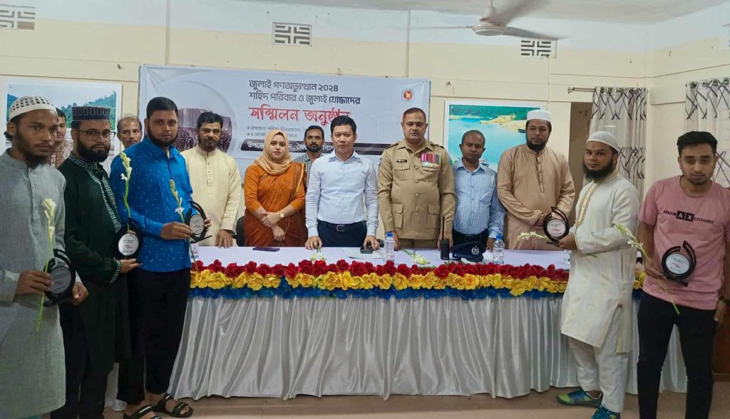 জৈন্তাপুর( সিলেট) সংবাদদাতা:: সিলেটের জৈন্তাপুর উপজেলায় ২০২৪ সালের ঐতিহাসিক ‘জুলাই গণঅভ্যুত্থান’এর বর্ষপূর্তি উপলক্ষে উপজেলা প্রশাসনের আয়োজনে শহীদ পরিবার ও আহত জুলাই যোদ্ধাদের সম্মাননা প্রদান করা হয়েছে।
