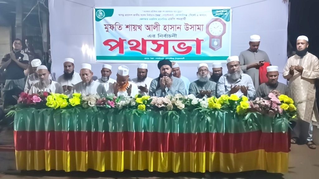 রবিবার (১০ আগস্ট) বাদ আদ আসর চিকনাগুল বাজারের আল মাসিম মার্কেট সম্মুখে অনুষ্ঠিত নির্বাচনী পথসভায় তিনি এসব বক্তব্য দেন। সভায় সভাপতিত্ব করেন বাংলাদেশ খেলাফত মজলিস জৈন্তাপুর উপজেলা সহসভাপতি মাওলানা জহির উদ্দিন। সঞ্চালনায় ছিলেন গোয়াইনঘাট উপজেলা সহসাধারণ সম্পাদক জাহিদ হাসান চৌধুরী এবং জৈন্তাপুর উপজেলা সাধারণ সম্পাদক আজমল হক।